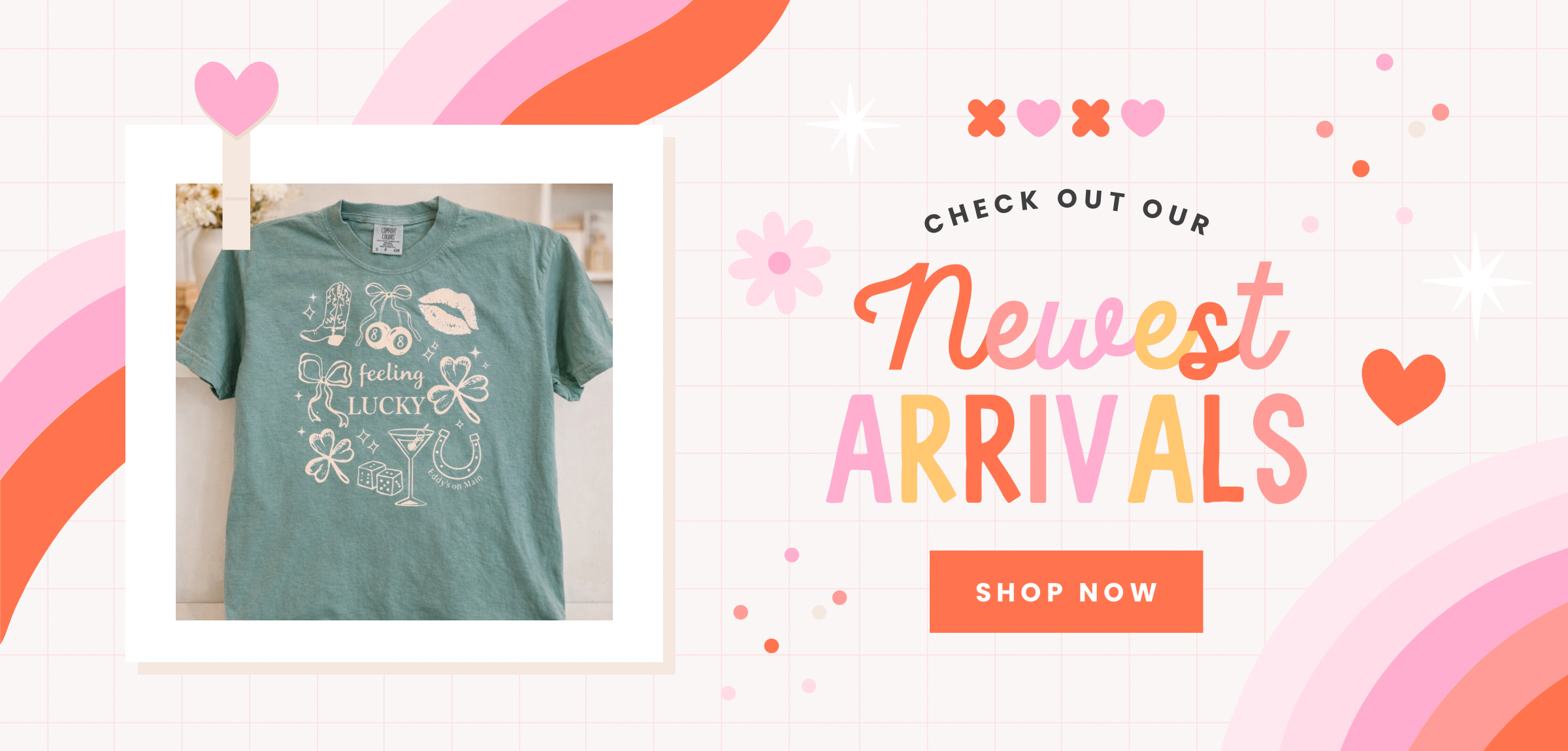 What started as a little dream (and a LOT of Diet Coke) turned into a boutique full of personality. Eddy's on Main was created to bring you custom embroidery with flair, curated gifts you'll actually love, and seasonal finds that make life FUN.